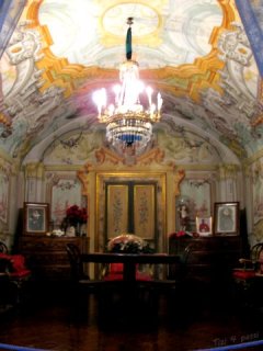Nel raccolto e silenzioso chiostro di San Gregorio Armeno, sotto ai portici, oltre ad altri splendidi gioielli, abbiamo notato questa sala riccamente affrescata.