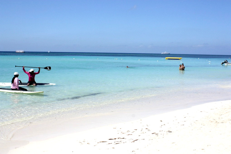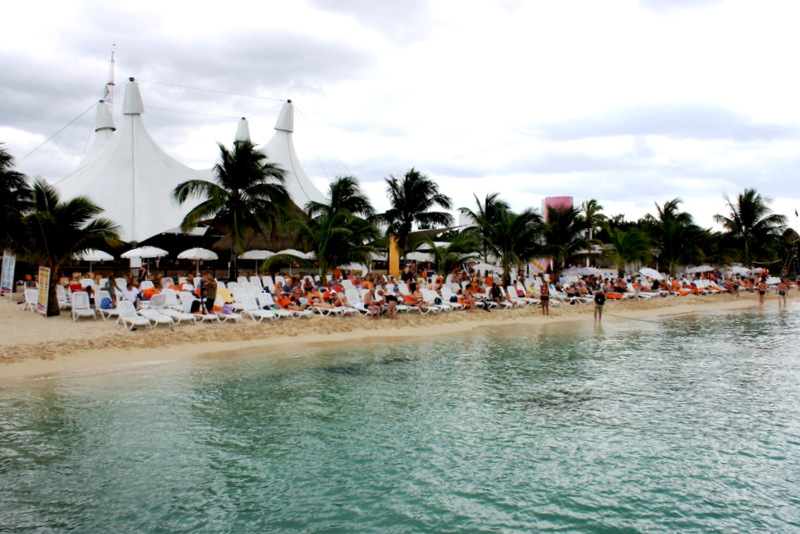 Appena scesi dalla nave ci offrono svariate escursioni, bagno con i delfini, le razze, immersioni, snorkeling, noi decidiamo di visitare una delle spiagge e ci portiamo verso il parcheggio dei taxi. Arrivati al parcheggio c’è un tabellone con la lista delle spiagge e i rispettivi prezzi per raggiungerle, optiamo per Playa Mia, dopo dieci minuti di taxi la raggiungiamo. La spiaggia è a pagamento, con la scelta di vari pacchetti comprendenti pasti, drink e attrazioni varie, vi consiglio il piatto messicano, sperando che almeno voi mi sappiate dire cosa ho mangiato, comunque non era male.
