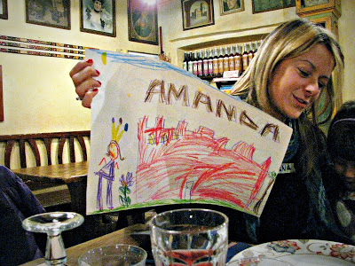 La serata continua, il tempo passa velocemente, al nostro tavolo si aggiunge ancora qualcuno, Ale e la sua tenera piccola. Mentre le parole si intrecciano tra storie, esperienze, racconti di viaggi e di vita, una bimba porta un dono alla sua mamma, esprimendosi con gran talento. La cena termina, lasciamo il locale.