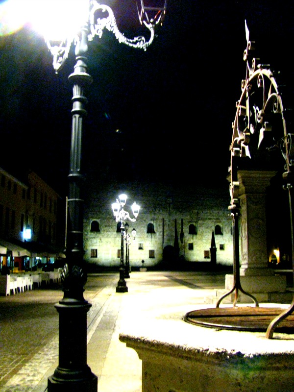 Tra le luci soffuse dei lampioni, la piazza è deserta e la facciamo un po’ nostra, pochi passi e ritorniamo in hotel.