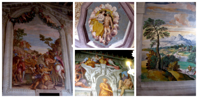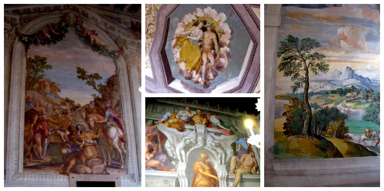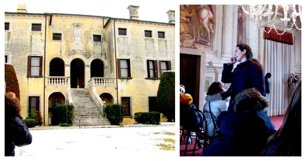 Monica comincia a spiegare e noi dobbiamo prestare molta attenzione a ciò che dice perché è in arrivo la prima sorpresa della giornata: ci ha organizzato una vera caccia al tesoro, con tanto di premi per i vincitori. Una volta entrati nella villa, visitiamo ogni stanza del piano nobile ascoltando tutte le informazione che arrivano dalla nostra preziosa guida. Alla fine ci sediamo tutti nel salone centrale. Monica comunica alle tre squadre, formate precedentemente, tutti i dettagli del gioco, grandi e piccini sono coinvolti, il gioco inizia. Nella prima fase dovremo cercare elementi architettonici sia all’interno che all’esterno della villa, un’allegra competizione si scatena tra le squadre e le sale sono animate da un continuo andirivieni di persone che corrono con il naso all’insù (o all’ingiù) alla ricerca di un indizio. La seconda fase del gioco prevede un quiz sulla storia del Palladio e della villa, le date sono quelle che ci fanno temere di più (per la verità non solo quelle), fatichiamo a ricordarle, ci proviamo ma Mike/Monica non transige, le risposte devono essere esatte. A che punto sarà il nostro punteggio? Qualcuno ha tenuto il conto?