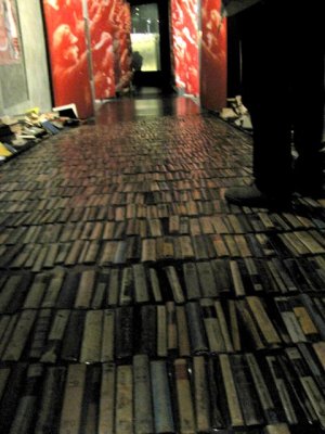 | Una corridoio lastricato di libri per ricordare il rogo dei libri a Berlino nel 1933 |