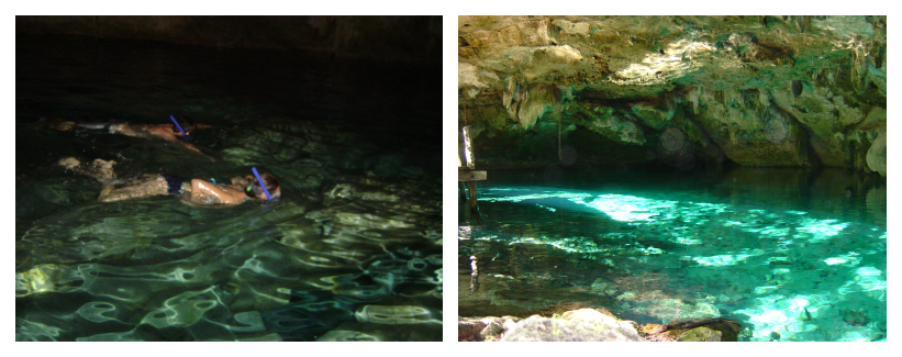 Nelle vicinanze visito un cenote, il Cenote Dos Ojos, una specie di lago sotterraneo che in alcuni tratti lascia spazio tra l’acqua e le rocce e che può essere visitano semplicemente con maschera e boccaglio.
