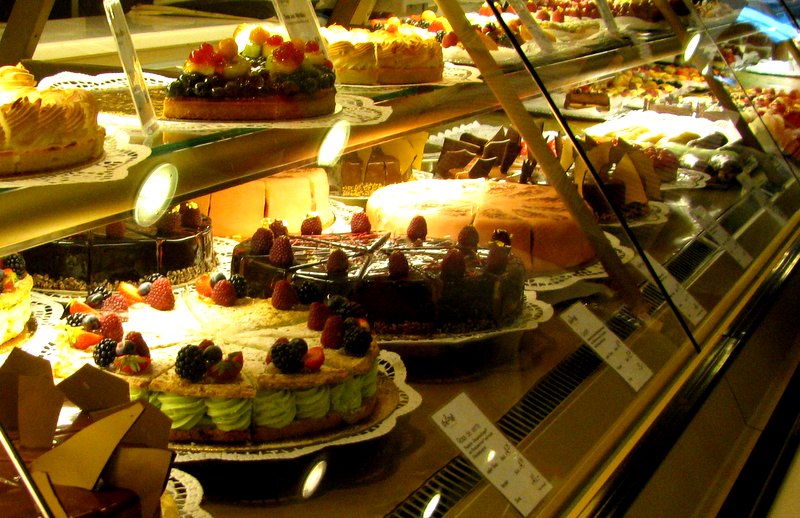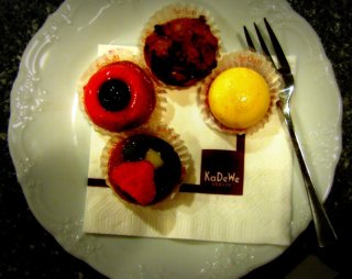 Ritornando a Berlino quel giorno le mie attenzioni erano rivolte al sesto piano dell’enorme edificio. Avevo sentito dire che c’era un piano tutto dedicato alla gastronomia. Le guide in rete poi non facevano altro che stuzzicare la mia curiosità. Dopo la visita di un museo nei paraggi restava tempo sufficiente per farci un salto. Una volta entrati iniziamo a salire, i piani scompaiono man mano che i gradini della scala mobile salgono. Al sesto piano ci aspetta un grande spazio stracolmo di prelibatezze di ogni tipo, arrivate da ogni dove. Confezioni di ogni fattezza, colore, materiale, contenevano qualunque cosa di commestibile si riesca a immaginare. Arrivati al punto centrale (o almeno così credo di ricordare) i banconi sfavillanti della zona pasticceria sfoggiavano i più invitanti dessert che io abbia mai visto. Guardate qui…
