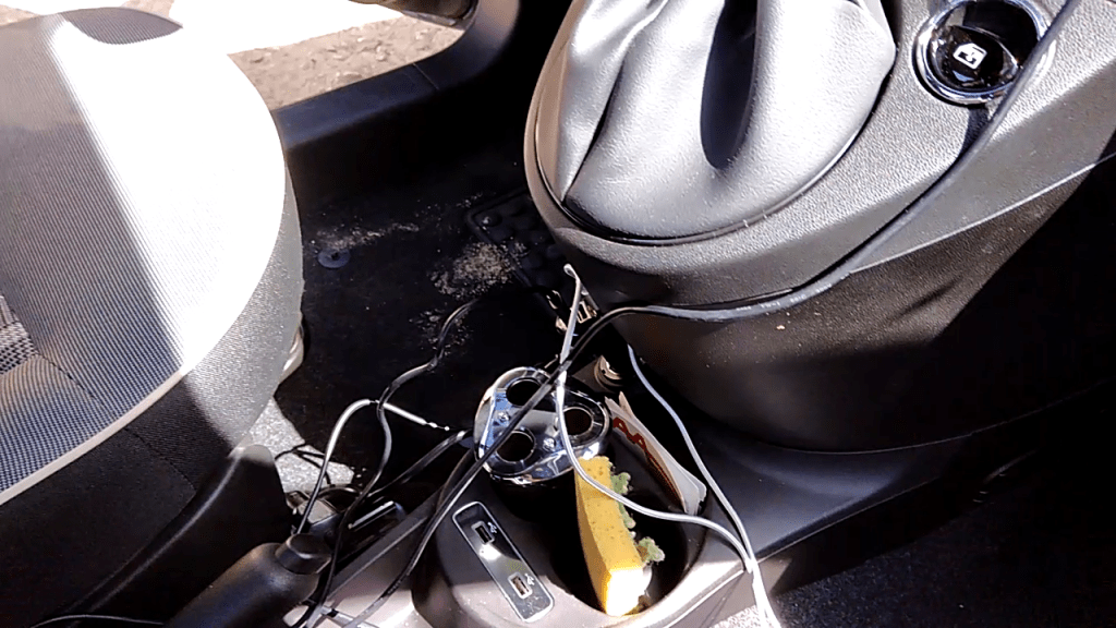 Il mattino seguente ci alzammo alle 8 per organizzarci al meglio. Colazione al B&B bella abbondante con ogni ben di Dio. Poi è venuto il momento di riposizionare i bagagli in auto e soprattutto il frigorifero, che la sera ci eravamo portati in stanza perché non potevamo lasciarlo scollegato tutta la notte. È stato qui che abbiamo allestito il cinquino per l’impresa: abbiamo posizionato le telecamere, fissate con gli appositi staffaggi e nastro biadesivo forte per evitare sorprese. Fissato il cronometro sempre al cruscotto in modo che venisse costantemente ripreso dalla telecamera posteriore e pure il navigatore. Per alimentare il tutto abbiamo preso uno sdoppiatore per la presa accendisigari, con il quale abbiamo ricavato ben 3 prese accendisigari e tre porte USB aggiuntive.