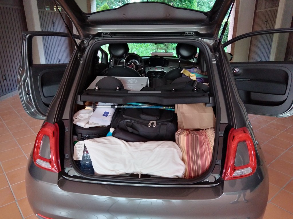 Come già anticipato in una precedente risposta, il motivo della partenza da Roma è stato dettata dal fatto che noi ci siamo ispirati all’impresa che hanno svolto i due ragazzi di Roma con la Ferrari. Loro partirono dai fori imperiali, mentre noi siamo partiti da via Claudia, sempre davanti al Colosseo ma dalla parte opposta. Scelta per noi obbligata in quanto zona non a traffico limitato (al contrario di via dei Fori Imperiali, per i quali avremmo dovuto chiedere il permesso al comune di Roma ). Per questo il giorno prima, cioè venerdì 20 maggio, alla sera, dopo aver finito di lavorare, abbiamo caricato i bagagli in macchina con una precisione millimetrica degna dei migliori giocatori di tetris.