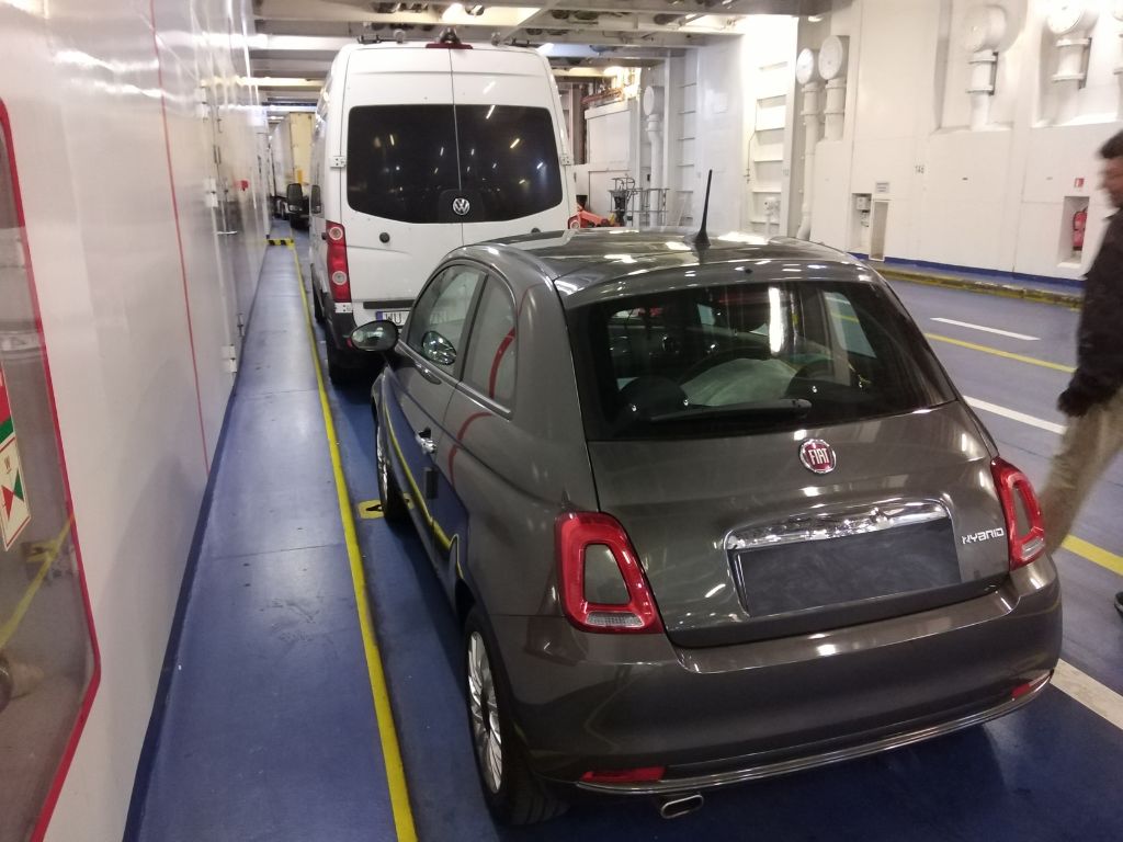 Wooow sembra fatta, vedo con chiarezza i numeri delle corsie, e mi infilo nella numero 6 come indicato dalla signora e dalla carta d’imbarco. Non mi sembra vero, vedo il traghetto, chiediamo al volo a un addetto se è il traghetto diretto a Gedser e ci infiliamo dentro. Appena in tempo. Spento il motore, dallo specchietto retrovisore vediamo il portellone del traghetto che si chiude alle nostre spalle. Incredibile, ce l’abbiamo fatta.
