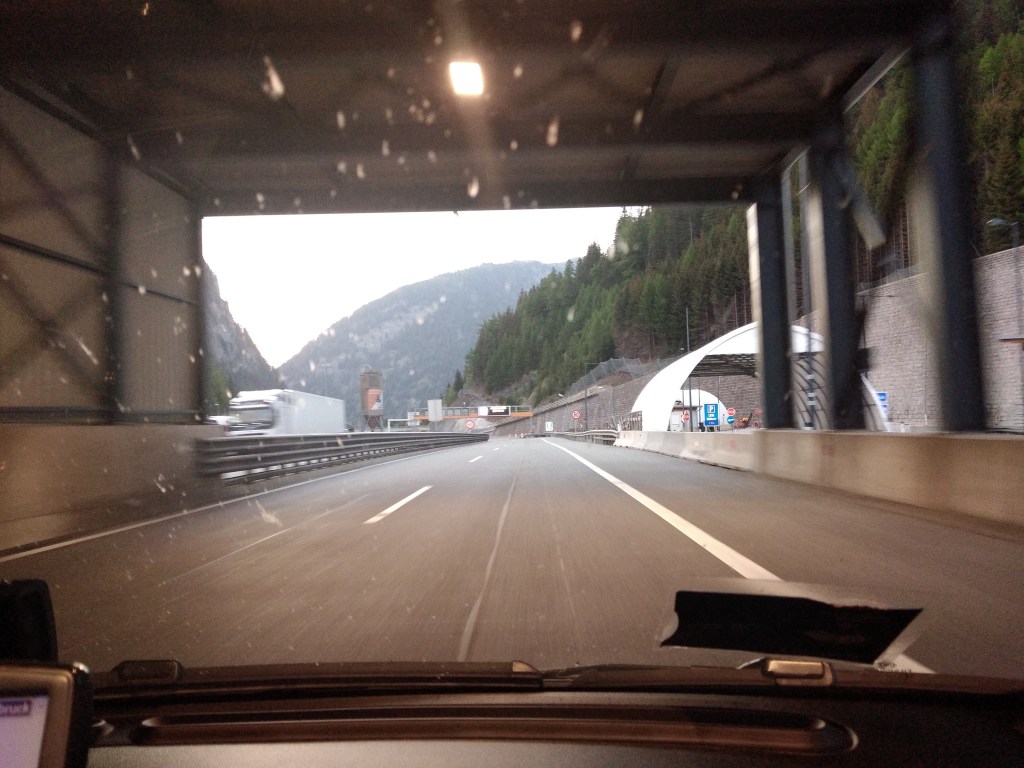 Imboccata la A22 del Brennero, abbiamo una piacevole sorpresa: il mitico cinquino consuma meno del previsto e quindi possiamo spostare più avanti il primo rifornimento che da tabella di marcia era previsto a Campogalliano, all’omonima area di servizio. Quindi proseguiamo sulla A22, ormai è pomeriggio inoltrato e ci prepariamo allo scendere della sera. Arrivati poco prima del confine con l’Austria, ci fermiamo per l’acquisto della vignetta autostradale necessaria per il transito sulle autostrade austriache. Ne approfittiamo anche per il cambio alla guida e per la prima cena in auto: per la prima sera il menù prevedeva un insalata di mare preparata dalla mamma di Alessandro, ovviamente abbiamo cenato a turno, in quanto chi non era impegnato alla guida, poteva mangiare in tranquillità e l’altro avrebbe mangiato al cambio successivo. Il viaggio prosegue, ormai è sera e sconfiniamo in Austria, dove attraversiamo il Ponte Europa e arriviamo alla volta di Innsbruck. Ora che siamo in Austria dobbiamo tenere assolutamente d’occhio la velocità per non sforare il limite.