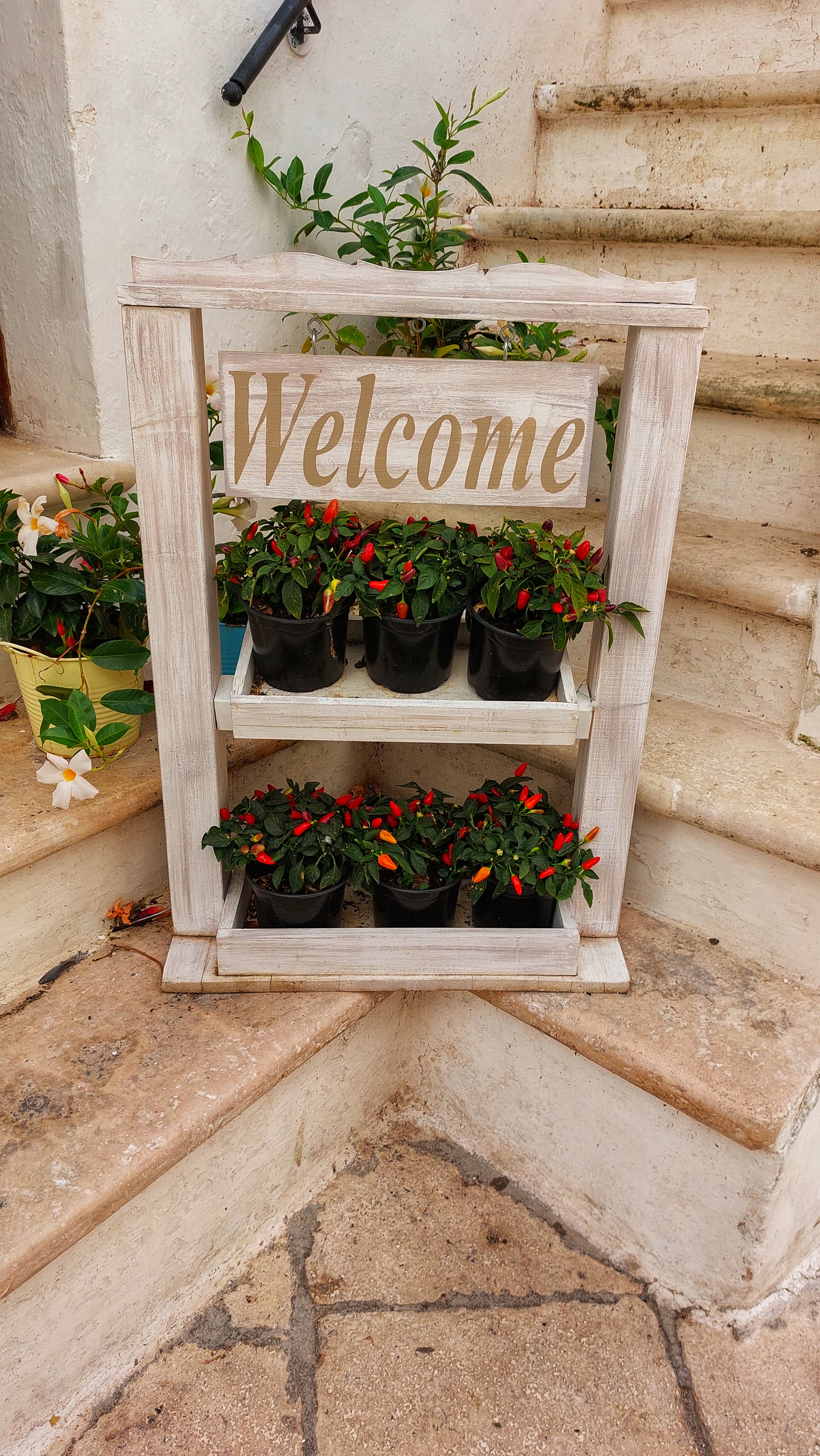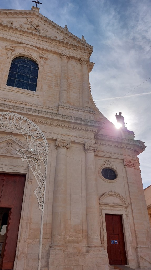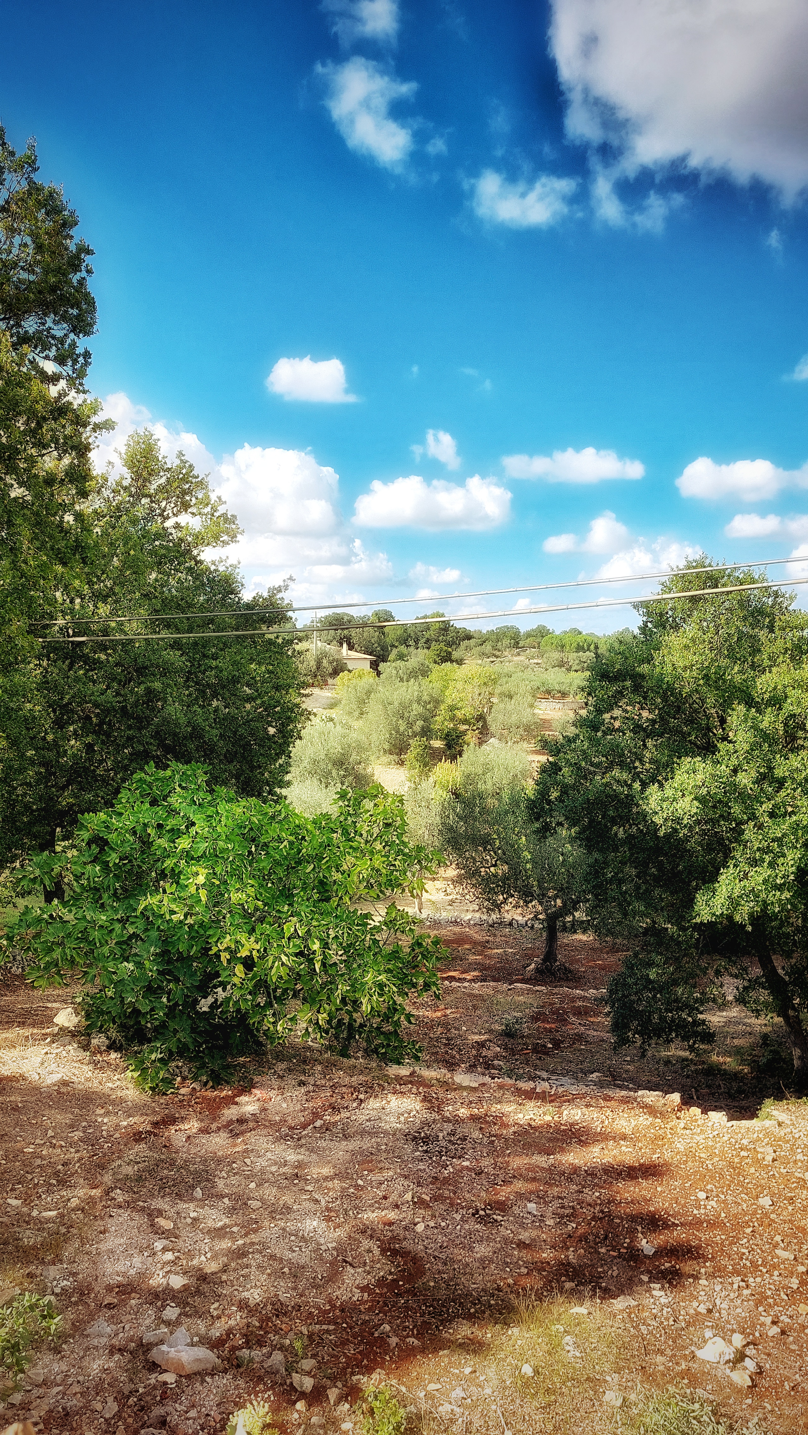 Pensando alla Chiesa Madre mi torna in mente un fatto successo il giorno prima, lo racconto perché è davvero carino: cosa può nascere da un contatto casuale con persone sconosciute. Il nostro alloggio era posizionato, nella piacevole campagna itriana a circa 8 chilometri da Locorotondo, che si divide tra oliveti e vigne. Quel pomeriggio usciamo per una passeggiata nei dintorni del piccolo agglomerato di case. Arrivati alla fine del centro abitato, la strada continua con una bellissima vista sui campi a perdita d’occhio e poi termina con le ultimissime sparute abitazioni della zona.