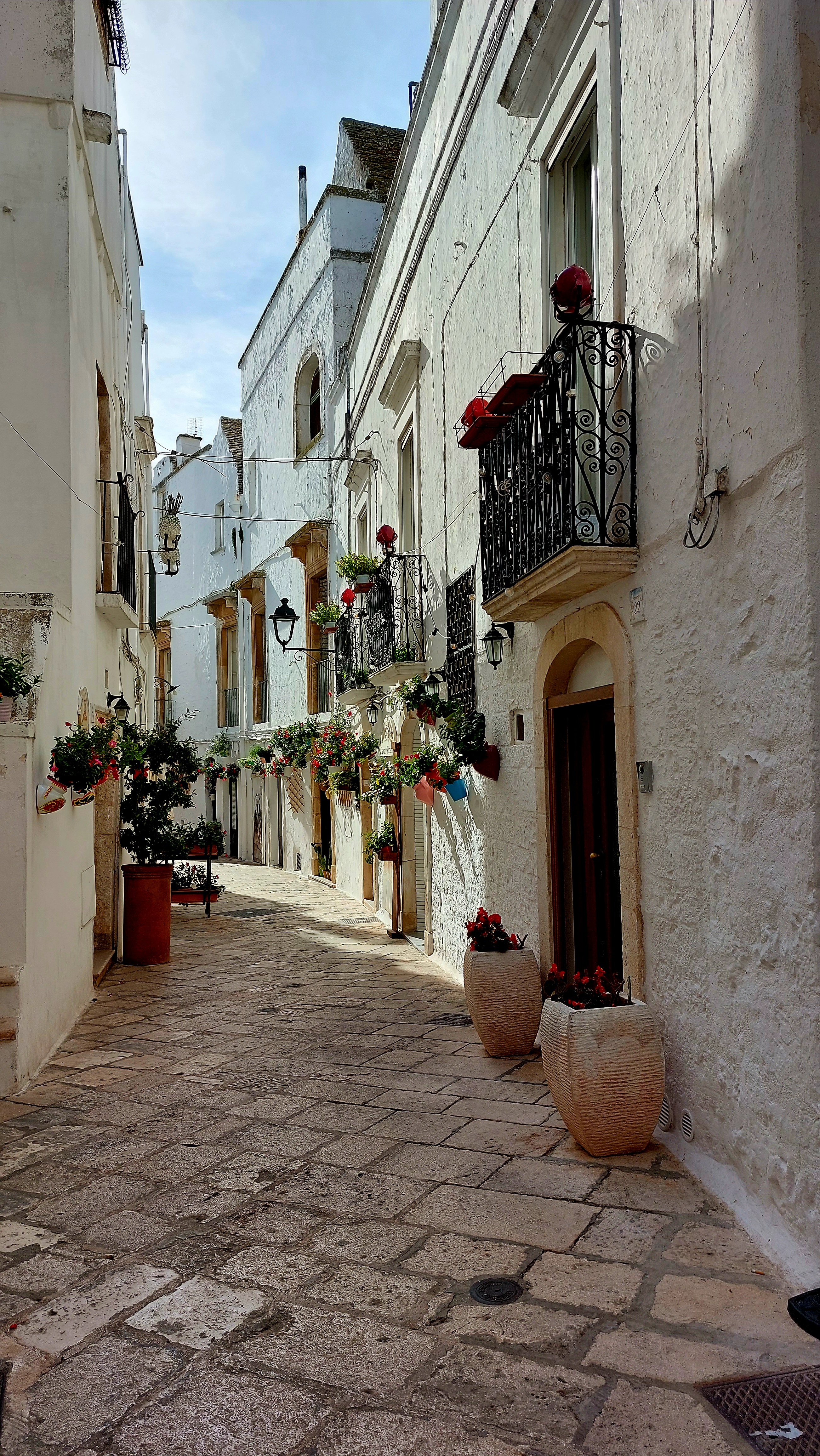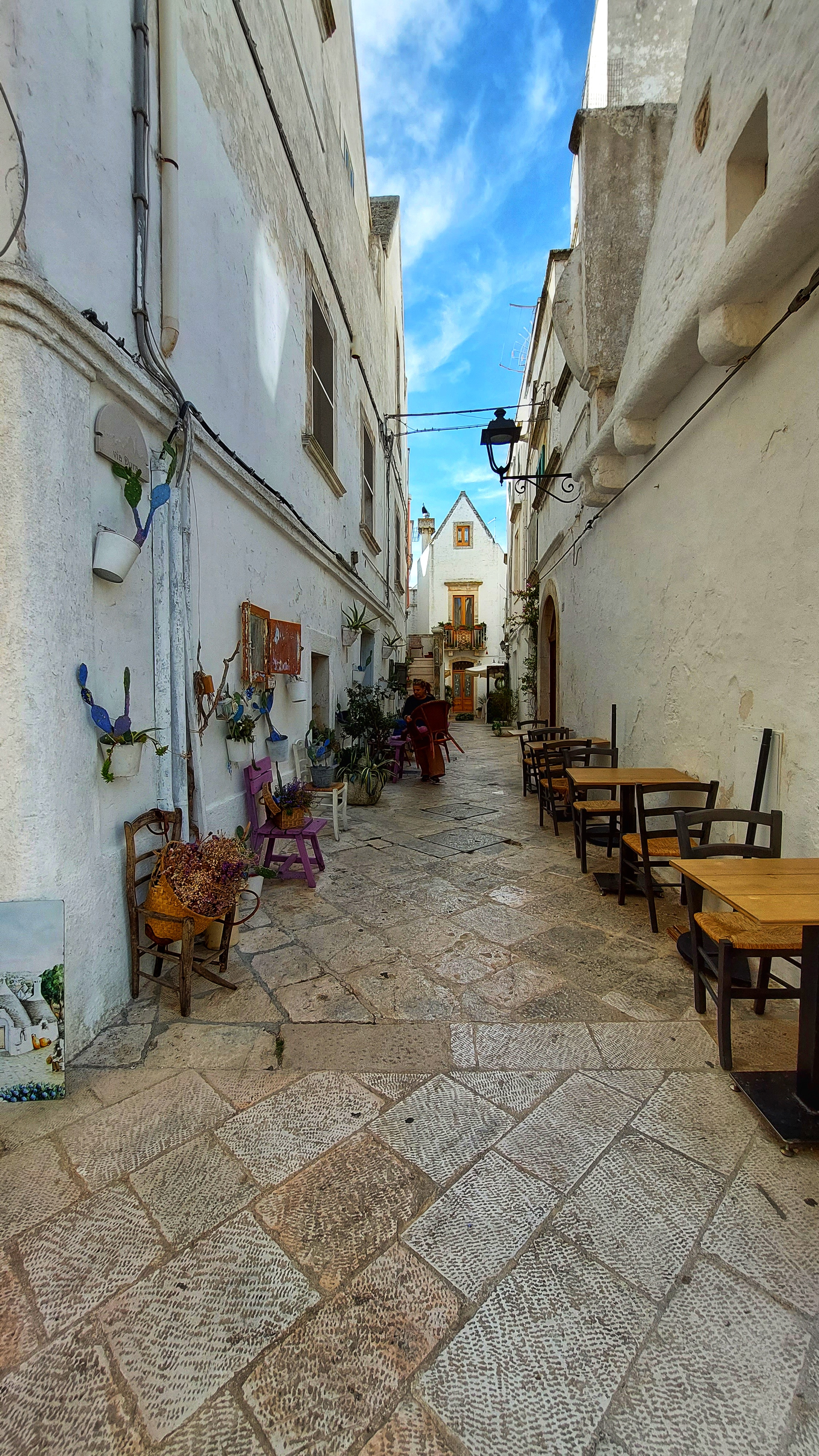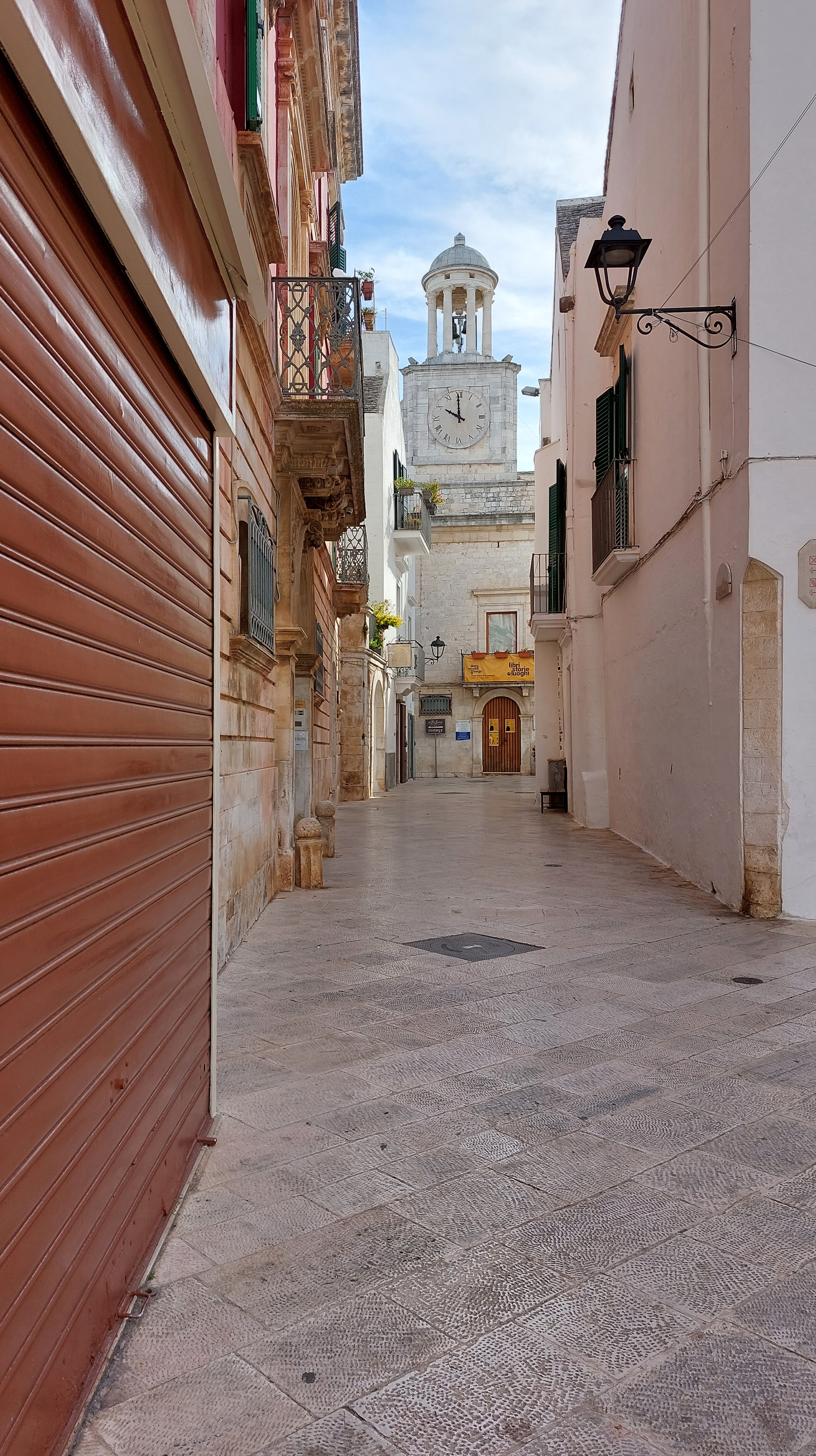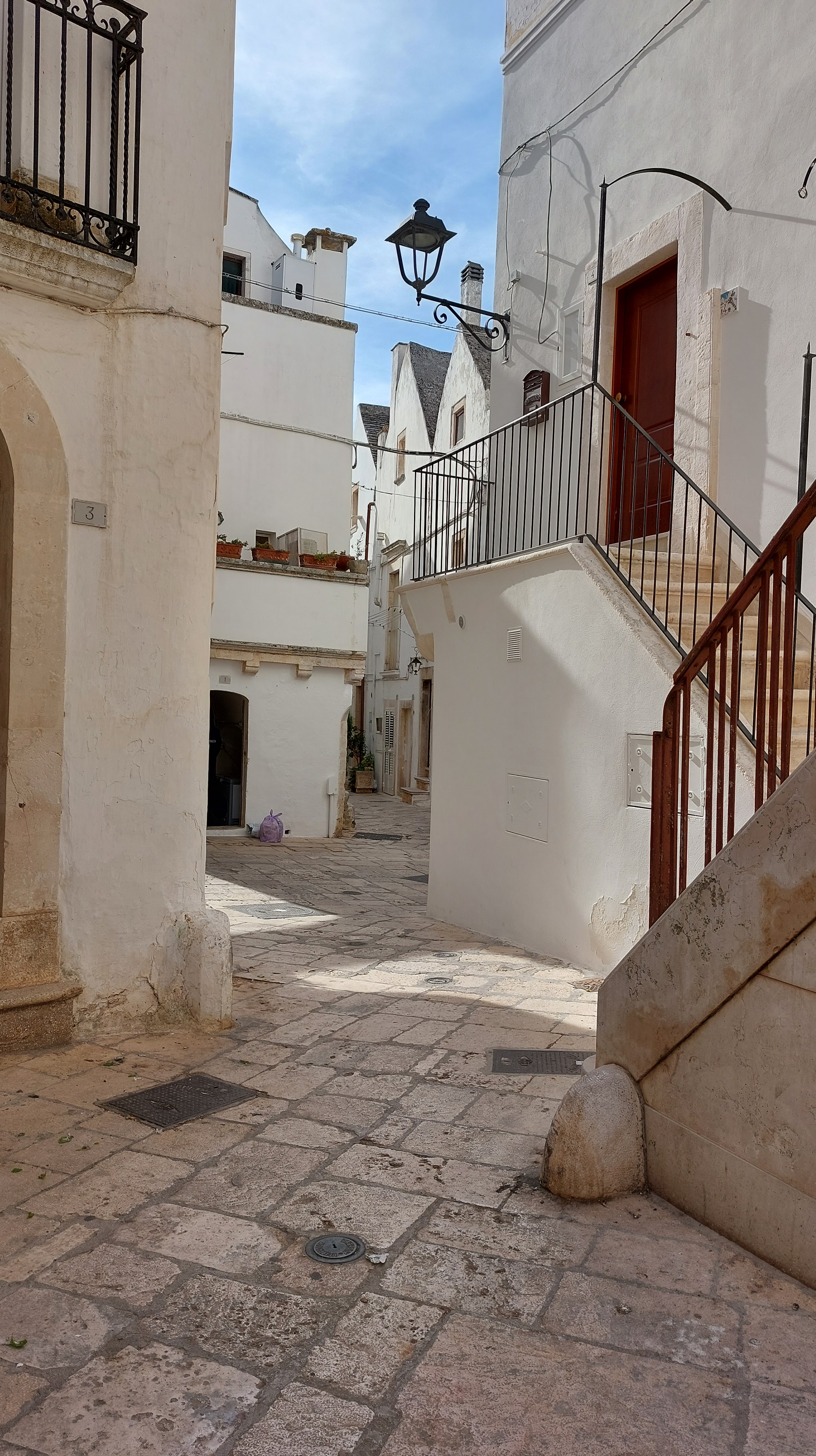 Se si percorre Via Nardelli, che abbraccia il borgo da questo lato, si ha una bellissima vista sulla Valle d’Itria, gli abitanti ne vanno fieri e hanno chiamato simpaticamente la strada “lungomare” anche se il mare, per motivo di distanza, non può essere visibile. Sulla via si affacciano molti locali, i tavolini sfiorano il muretto sul panorama, io la immagino di sera con le luci: dev’essere uno spettacolo!
