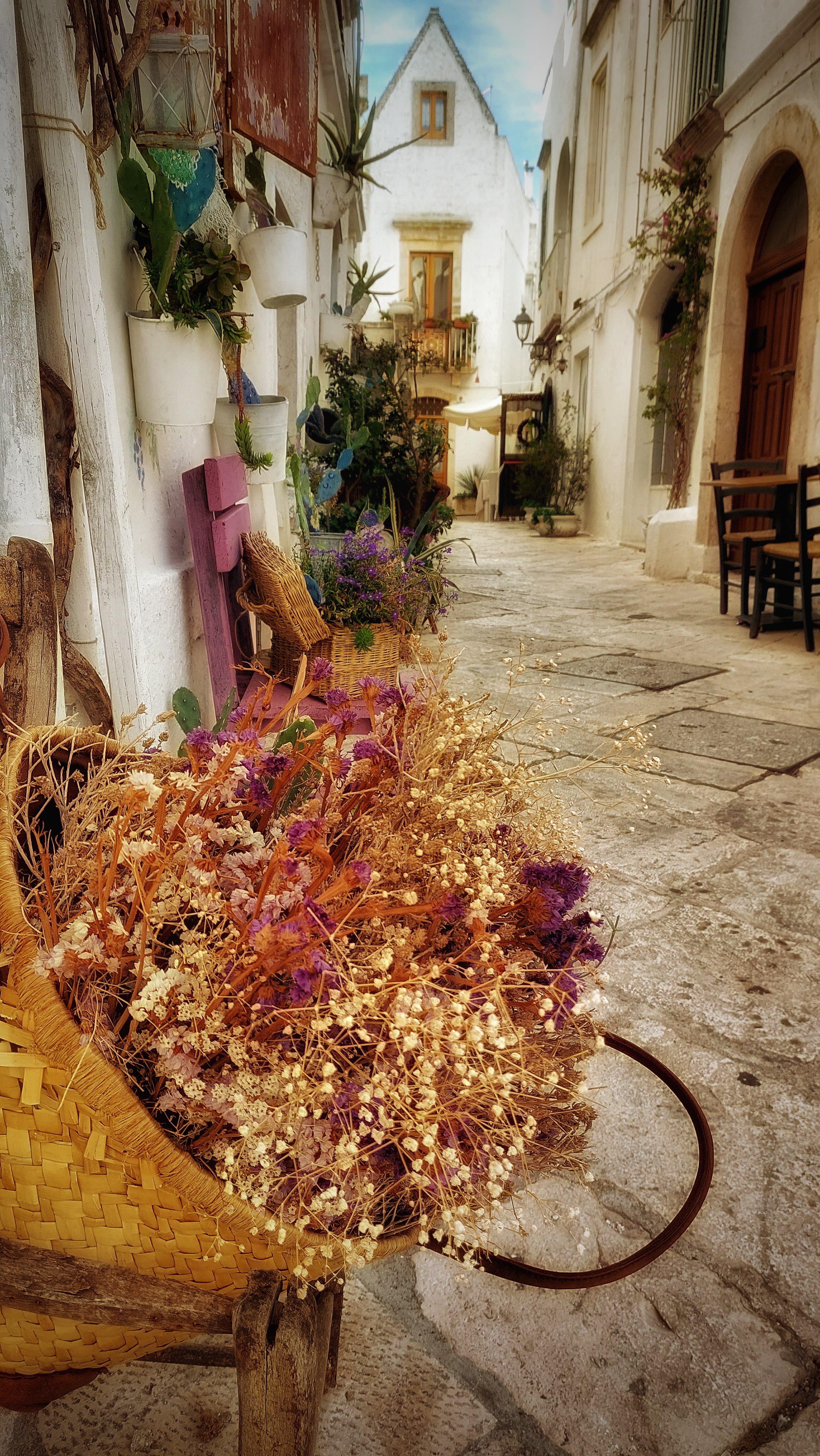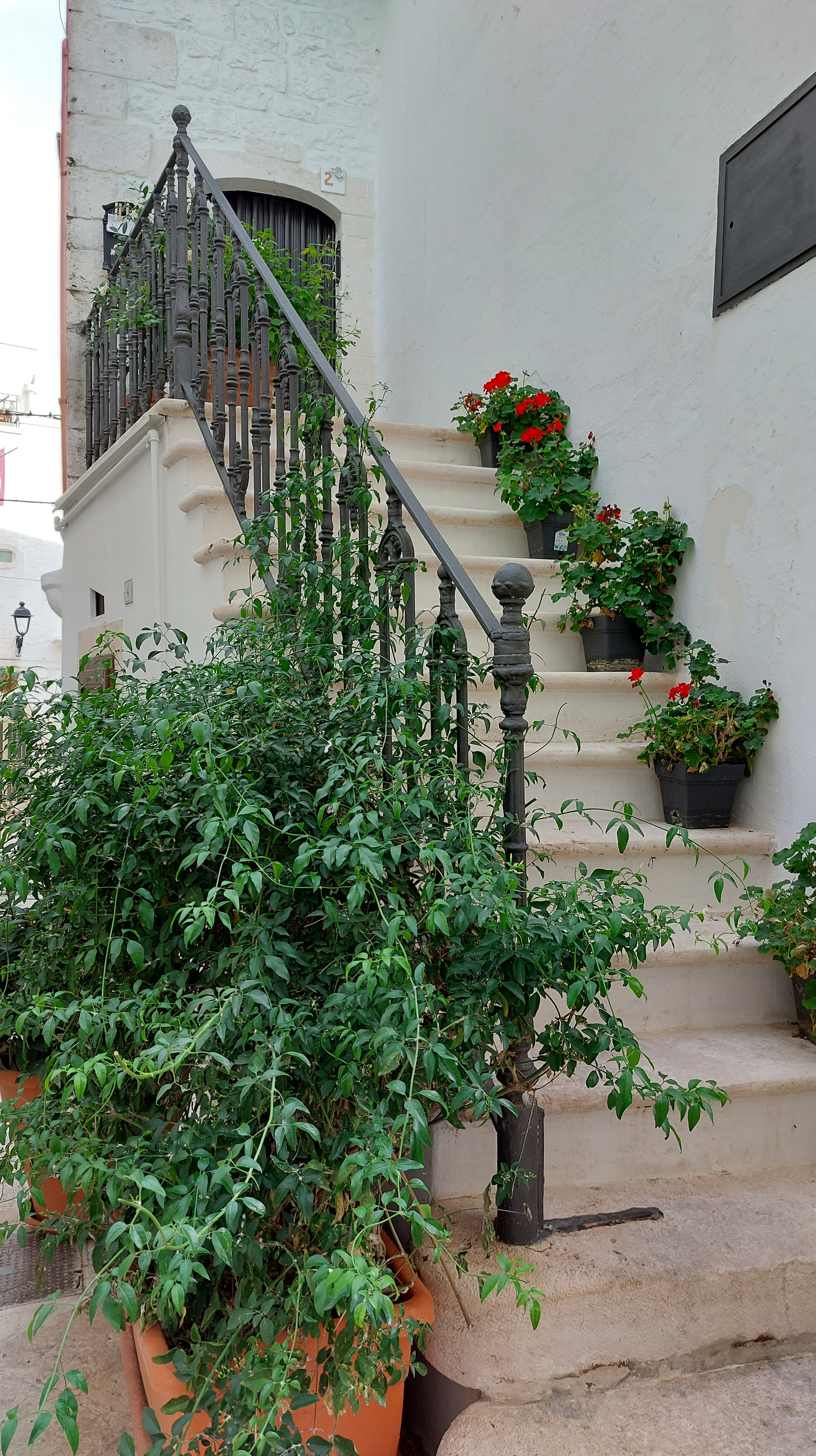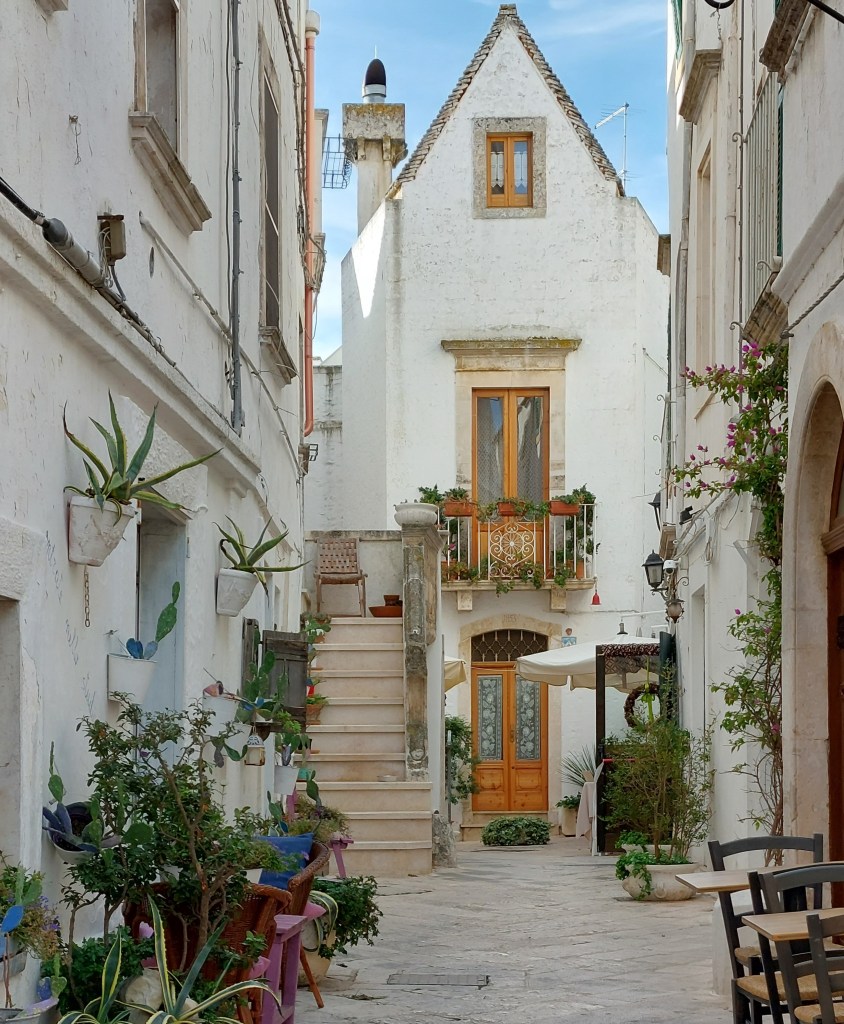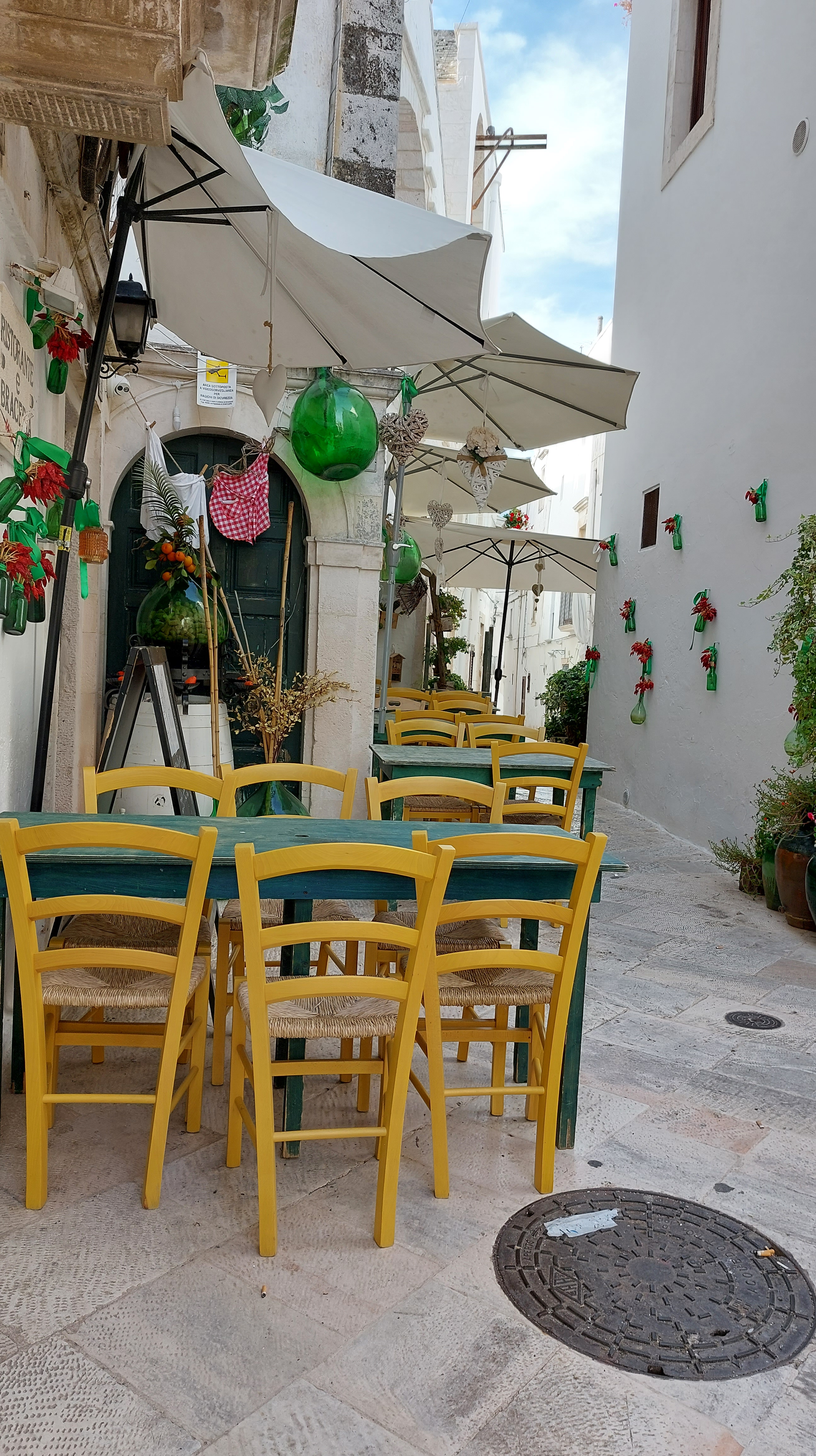 Se si percorre Via Nardelli, che abbraccia il borgo da questo lato, si ha una bellissima vista sulla Valle d’Itria, gli abitanti ne vanno fieri e hanno chiamato simpaticamente la strada “lungomare” anche se il mare, per motivo di distanza, non può essere visibile. Sulla via si affacciano molti locali, i tavolini sfiorano il muretto sul panorama, io la immagino di sera con le luci: dev’essere uno spettacolo!