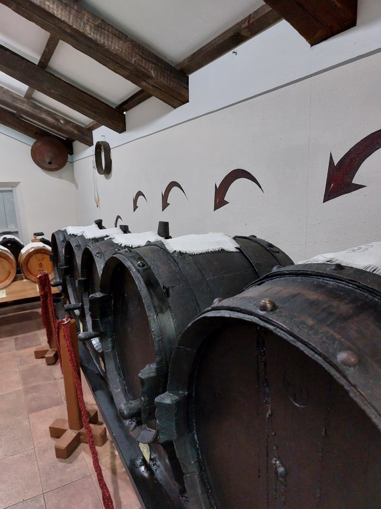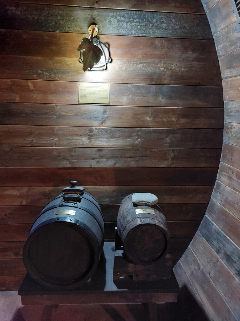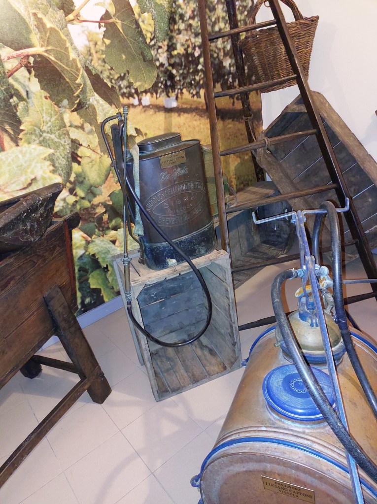La mia visita inizia con un video introduttivo che illustra la storia e le fasi di produzione. In una sala sono presenti alcuni strumenti e macchine per la raccolta e la lavorazione dell’uva.