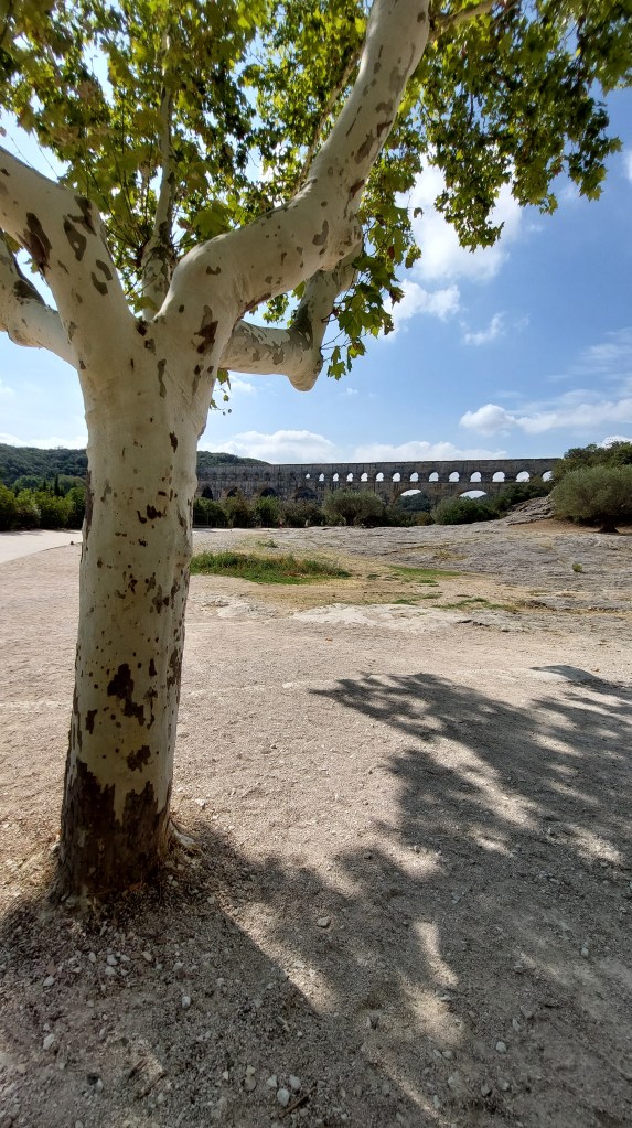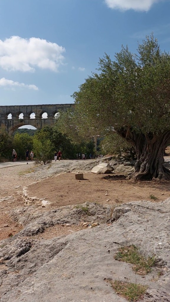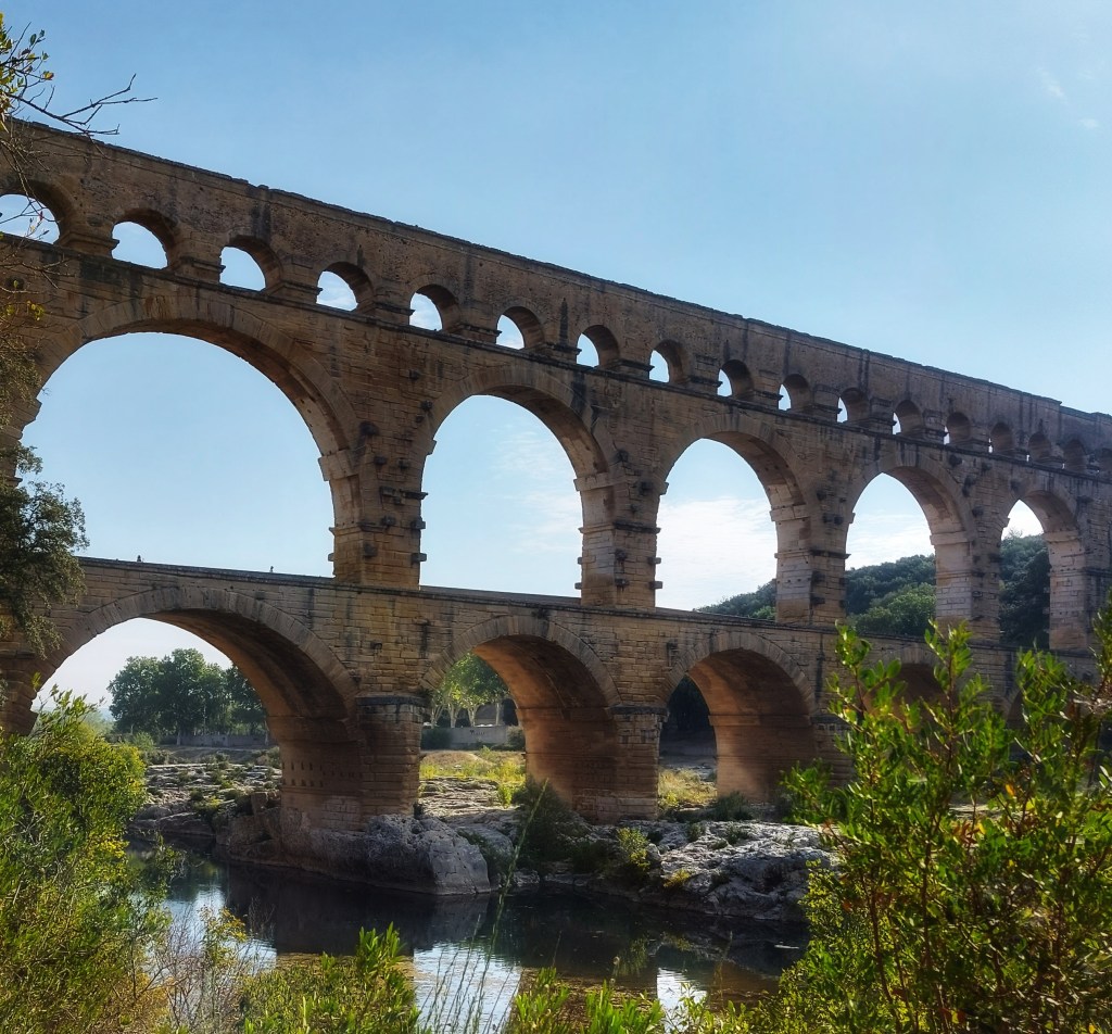 L’escursione del giorno ci farà fare un salto indietro nel tempo in un punto preciso del vasto impero romano ai tempi di Augusto, dove si può ammirare da vicino un’opera dell’ingegneria romana di oltre 2000 anni fa. La visita prevede di cambiare regione, il sito storico non si trova in Provenza ma bensì nella regione confinante a ovest: l’Occitania, nel dipartimento di Gard. Ci separano più di 100 km dalla nostra base ed è un appuntamento fortemente voluto da entrambi. Usciamo di casa di buon’ora, il cielo è limpido, la temperatura calda, scegliamo un percorso facile: la comoda rete autostradale. Arriviamo con un leggero ritardo sulla tabella di marcia che avevamo previsto ma la cosa non ci preoccupa più di tanto, il protagonista di oggi non ha impegni, è lì che aspetta, saldamente ancorato a terra, già dal primo secolo d.C.